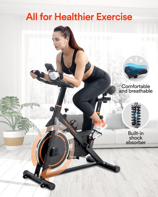 UREVO indoor cycling bicycle is a smooth, durable and easy to maintain bike designed to enable cyclists to exceed preset limits. In addition to its sturdy steel frame and nearly silent belt drive, the UREVO cycling bike features many customizable settings. 2-ways adjustable non-slip handlebar, 4-ways padded seat,You can easily find the most suitable position.